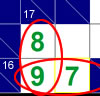 If a row has a sum of 16 over 2 squares and a column has a sum of 17 over 2 squares, the only possible values are 7-9 for the row and 8-9 for the column. Therefore, the only common value for the intersecting box is a 9. This strategy is best when starting off a puzzle.
