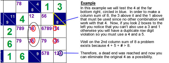 It is using different situations that will lead to a dead end and then removing the pencil-mark that lead to that dead end.